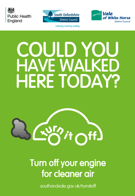 The Air Quality team are sending the posters to schools and community groups in the districts but they will also be available to download from our dedicated webpage – www.whitehorsedc.gov.uk/turnitoff.