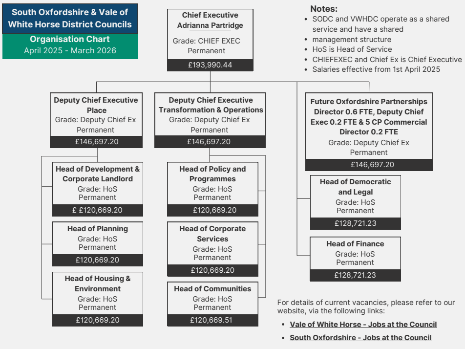 Following a recruitment process, Adrianna Partridge was appointed as Chief Executive and Head of Paid Service at Council meetings at the Vale of White Horse and South Oxfordshire on 10 and 11 December 2025 respectively. She starts in her role on 1 January 2026.