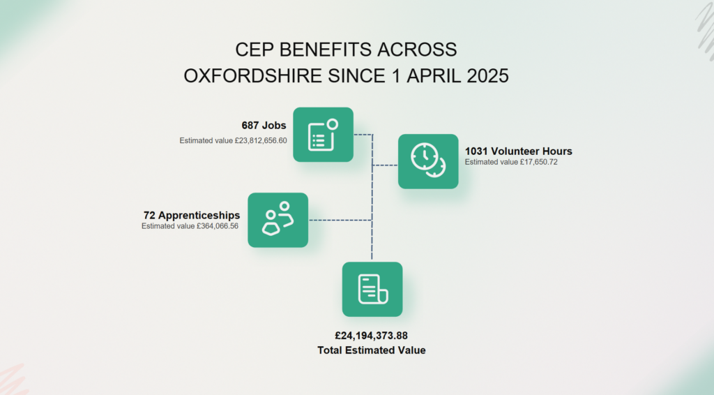 Community Employment Plans create economic and social value across Vale of White Horse District but also across the wider Oxfordshire area. These benefits include: