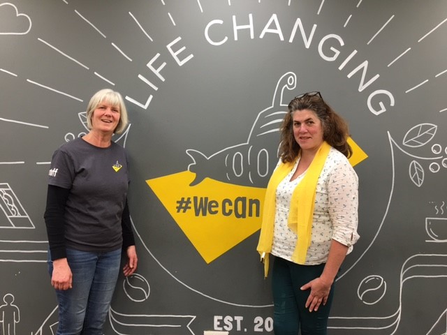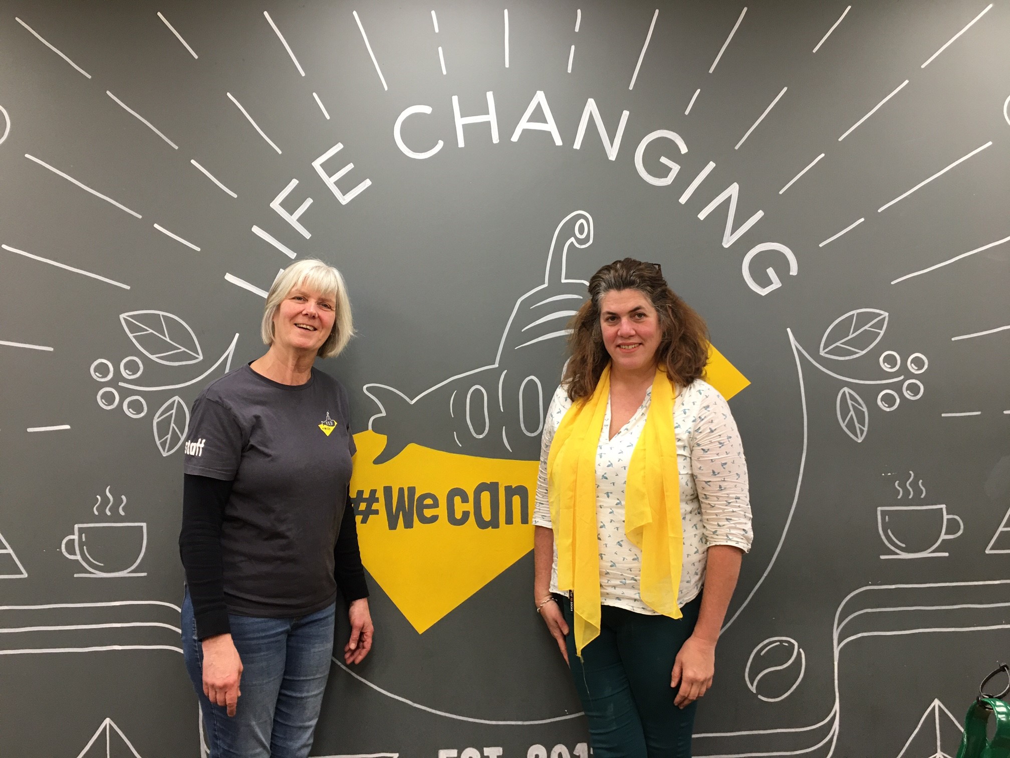 IMAGE 1 CAPTION: L-R: Cllr Bethia Thomas, Leader of Vale of the White Horse District Council with Kate Day, Supervisor at Yellow Submarine’s Oxford café
