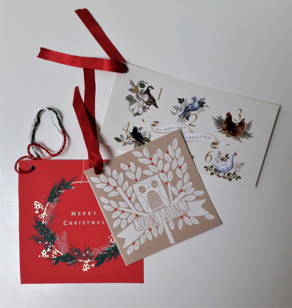 - Use old Christmas cards to make gift tags for next year by cutting off the backs of the cards and reusing the fronts.
